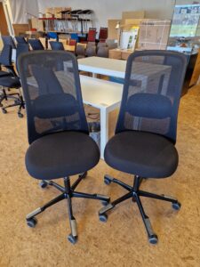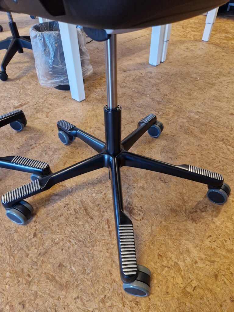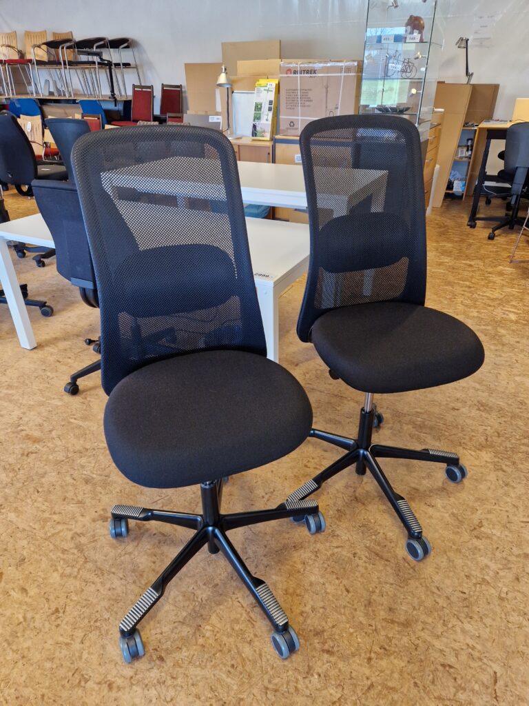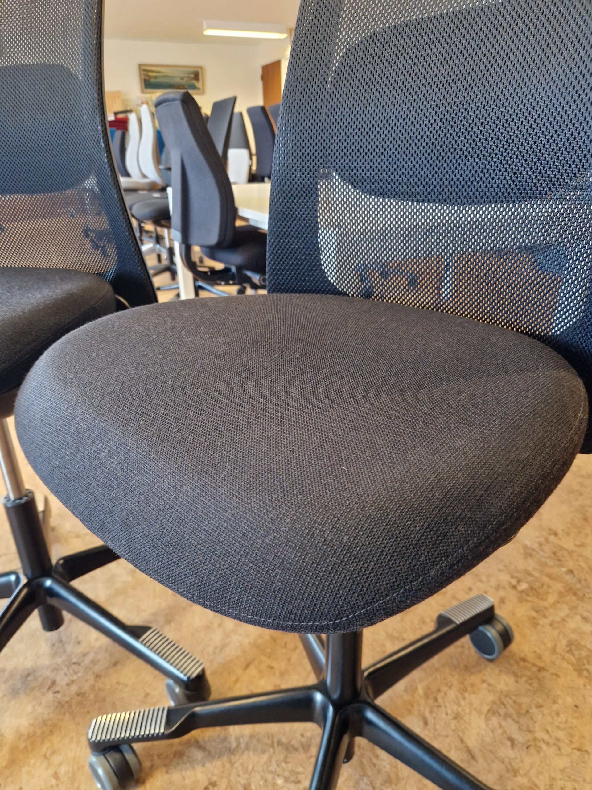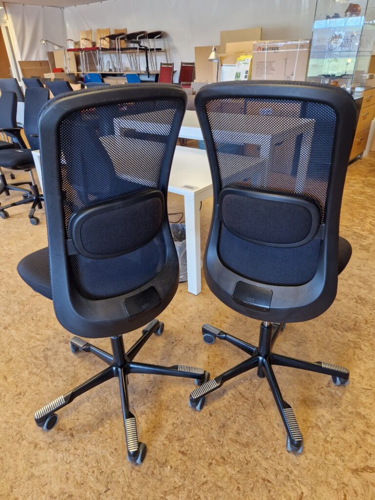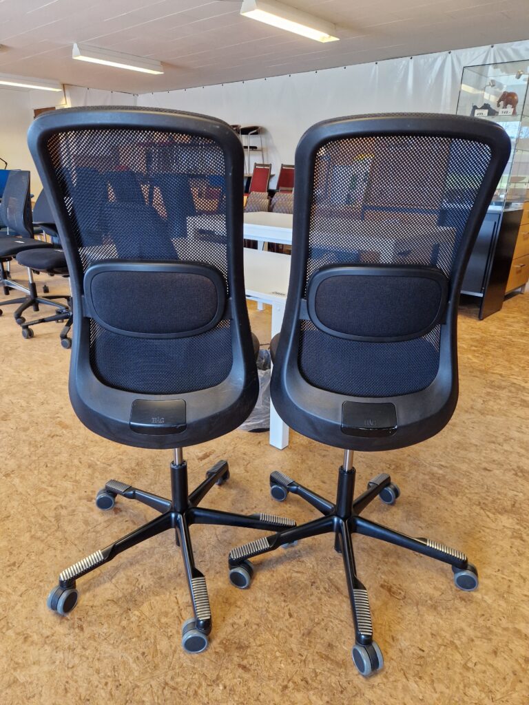 HÅG SoFi model 7500 er en utrolig lækker stol, og et godt valg, hvis du ønsker god siddekomfort og mange indstillingsmuligheder. Denne SoFi er med rygstykke i sort Mesh netstof, som giver en ventilerende effekt. Sædet er betrukket med sort stof. Stolen er med 200 mm gaspatron og kan indstilles i siddehøjden fra 48-67 cm. Derudover har stolen lændestøtte, som kan højdereguleres, og sædet kan dybdereguleres. SoFi har HÅG in Balance vippefunktion, som følger kroppens bevægelser. Vippefunktion kan låses, hvis dette ønskes, men det anbefales ikke, da det er bedst for kroppens holdning, at stolen følger med éns bevægelser. Fembenet fodkryds i sortlakeret aluminium og skridsikker belægning til fødderne. Hjul: Velegnet til hårde gulve. Stolene fremstår med almindelige brugsspor.