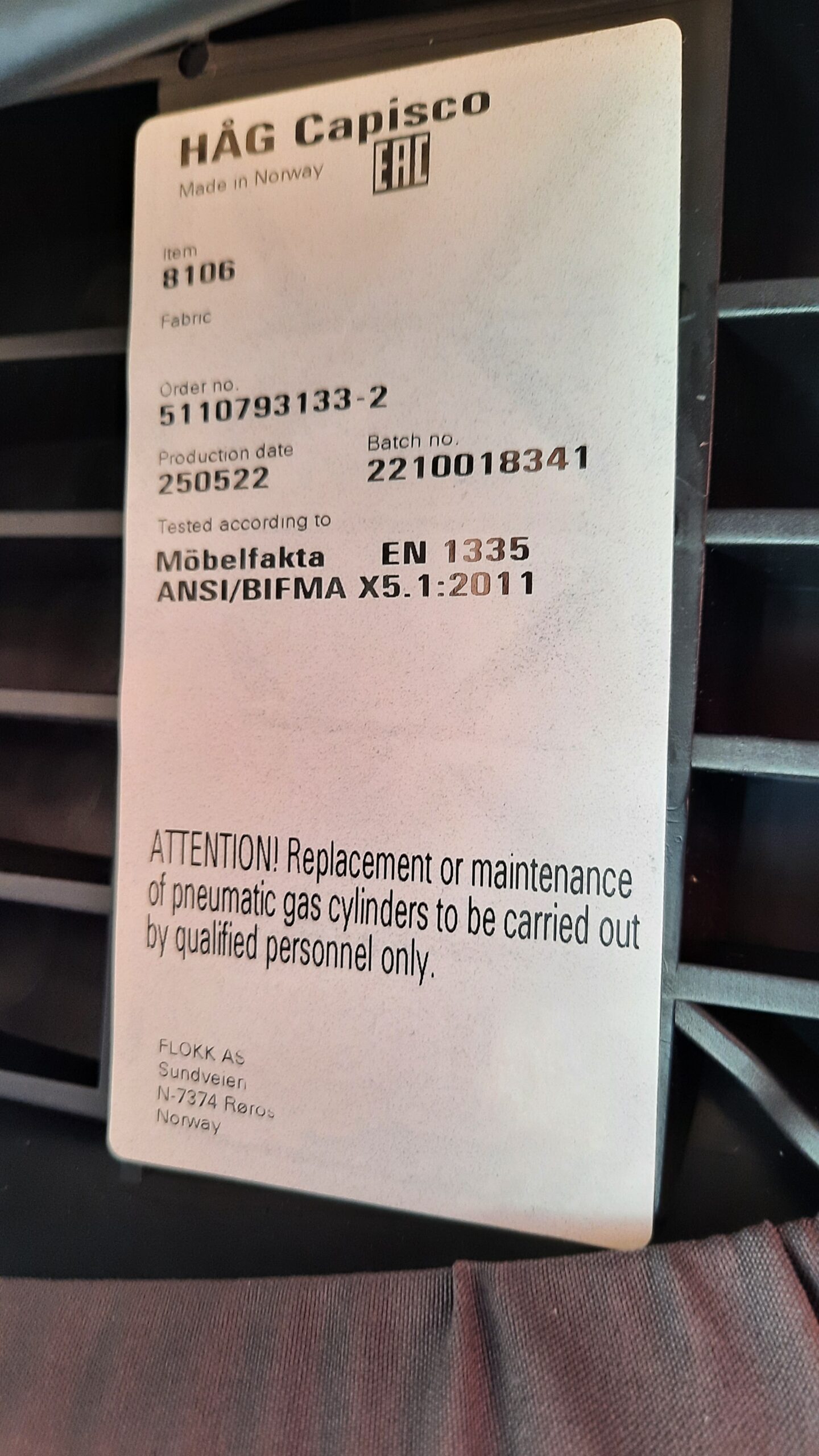 HÅG Capisco 8106 med sort Fame stof. Fame er et uldbetrækstof med en slidstyrke på hele 200.000 Martindale. Stoffet er både blødt og strækbart. På denne Capisco 8106 kan sædedybden reguleres, ryghøjden kan justeres og siddehøjden kan indstilles fra 50-67 cm (med belastning). Stolen har free flow, og den kan også låses i vandret position eller bagover. Fodkryds med 5 ben og skridsikker belægning til fødderne. Hjul: Velegnet til hårde gulve. Stolen er med almindelige brugsspor, såsom lidt falmet i stoffet.
