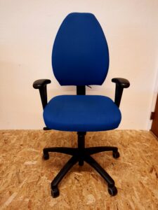 Fin EFG kontorstol med blåt stof betræk. Stolen er med justerbare armlæn og har mange indstillingsmuligheder. Siddehøjden kan reguleres fra 43-53 cm. Stolen er med almindelige brugsspor – blandt andet lidt pletter/mærker i stoffet. Varenummer: 230920127Pris 800,- Forhør nærmere for fragtpris. Varen er solgt! Søger du noget lignende? Så henvend dig gerne via sidens kontaktformular, eller på 21221177. Mvh. Jens – Grevsen Genbrug