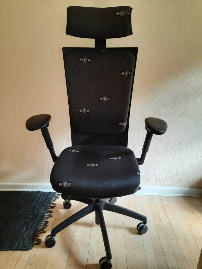Lækker EFG kontorstol med masser af muligheder. Siddehøjden kan indstilles fra 46-56 cm. Derudover kan stolens ryg justeres i højden, stolens sæde kan fastlåses i en bestemt position, eller følge kroppens bevægelser. Det samme kan rygstykket, og man kan enten gøre det med sæde og rygstykket på én gang (free flow) eller fastlåse den ene del, mens den anden del følger kroppen. Udover det har stolen også sædeforskydning, den har armlæn, der kan indstilles i højden ,og den har aftagelig nakkestøtte. Stolen er i pæn stand. Pris 1000,- Forhør nærmere for fragtpris. Varenummer: 040820101 Varen er solgt! Søger du noget tilsvarende, så kontakt mig på 21221177 eller bliv skrevet op i kontaktformularen, så prøver jeg at finde noget lignende til dig. Mvh. Jens – Grevsen Genbrug