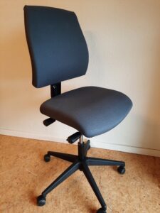 Interstuhl stolen er dejlig tysk kvalitet. Den har gråt polster, en indstillelig siddehøjde fra 50-65 cm og mange indstillingsmuligheder i øvrigt. Stolen følger kroppens bevægelser, men kan også fastlåses i diverse positioner. Rygstykket kan højdejusteres og det samme kan sædedybden. Desuden har stolen en smule vip forover og man kan justeres modstanden i vip funktionen generelt. Stolen er i pæn stand, med meget små rifter i stoffet – se billeder! Pris 1250,- Forhør nærmere for fragtpris. Varenummer: 050221187Varen er solgt! Søger du noget lignende? Så henvend dig gerne via sidens kontaktformular, eller på 21221177. Mvh. Jens – Grevsen Genbrug
