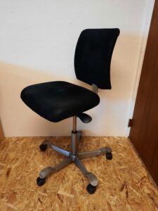 Smuk HÅG H05 model 5100 med sort comfort betræk (microfiber) med en slidstyrke på 150.000 Martindale. Højdeindstilling i sæde fra 49-64 cm. Stolen kan højdejusteres i ryggen og sædeforskydes. Den har flydende vip, hvor den følger kroppens bevægelser. Vip funktionen kan reguleres i, hvor meget man kan vippe. Desuden er det muligt at fastlåse stolen, i 3 positioner (forover, vandret og bagover). Fembenet fodkryds med skridsikre riller. Hjul: velegnet til hårde gulve. Stolen er i pæn stand, med almindelige brugsspor. Vejledning medfølger.