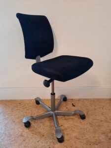 Smuk HÅG H05 model 5100 med mørkegråt comfort betræk. Højdeindstilling i sæde fra 48-64 cm. Stolen kan højdejusteres i ryggen og sædeforskydes. Den har flydende vip, hvor den følger kroppens bevægelser. Vip funktionen kan reguleres i, hvor meget man kan vippe. Desuden er det muligt at fastlåse stolen, i 3 positioner (forover, vandret og bagover). Fembenet fodkryds med skridsikre riller. Hjul: velegnet til hårde gulve. Stolen fremstår med nogle brugsspor, såsom et slidspor i stoffet på rygstykket, samt en mislyd i rygstykket. Pris 1100,- Forhør nærmere for fragtpris. Varenummer: 180121171Varen er solgt! Søger du noget lignende? Så henvend dig gerne via sidens kontaktformular, eller på 21221177. Mvh. Jens – Grevsen Genbrug
