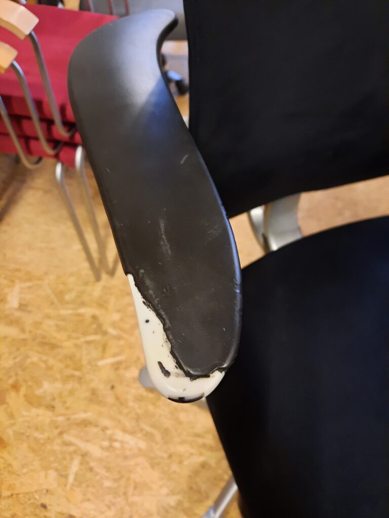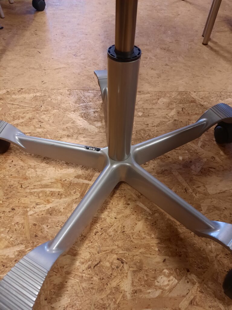 HÅG H05 model 5600 med sort Comfort betræk (microfiber) med en slidstyrke på 150.000 Martindale. Stolen har armlæn som kan højde- og sidejusteres og desuden kan man dreje dem for let at rejse sig fra stolen/sætte sig på stolen, eller hvis man bare ikke ønsker at bruge armlænene kan de drejes om bag stolen. Derudover er stolen med højdejusterbar nakkestøtte. Højdeindstilling i sæde fra 48-64 cm. Stolen er med mellemhøjt rygstykke, som er højdejusterbart. Den har kombineret ryghøjdejustering og sædeforskydning. Den har flydende vip, hvor den følger kroppens bevægelser. Vip funktionen kan reguleres i, hvor meget man kan vippe, og endelig kan man vælge at fastlåse den i 3 positioner. Gråmalet fodkryds med fem ben og skridsikre riller, til fødderne. Hjul: velegnet til tæpper. Stolen er i med almindelige brugsspor. Armlænene har afslag – se billeder. Bemærk, ønsker man ikke at bruge armlæn, kan de afmonteres. Lagerbestand: 2 stk.