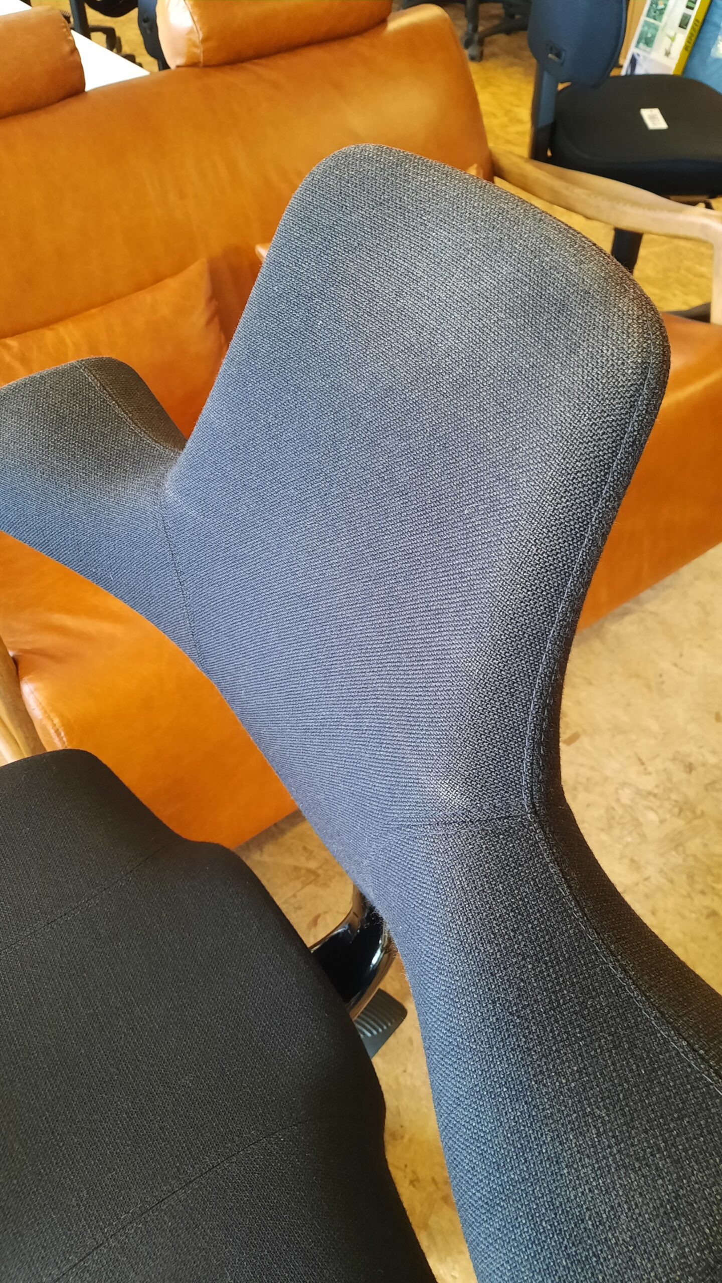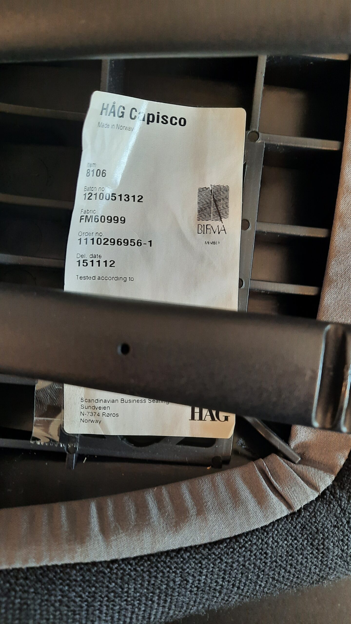 HÅG Capisco 8106 med sort Fame stof. Fame er et uldbetrækstof med en slidstyrke på hele 200.000 Martindale. Stoffet er både blødt og strækbart. På denne Capisco 8106 kan sædedybden reguleres, ryghøjden kan justeres og siddehøjden kan indstilles fra 50-67 cm (med belastning). Stolen har free flow, og den kan også låses i vandret position eller bagover. Fodkryds med 5 ben og skridsikker belægning til fødderne. Hjul: Velegnet til hårde gulve. Stolen er med almindelige brugsspor, såsom lidt falmet i stoffet.
