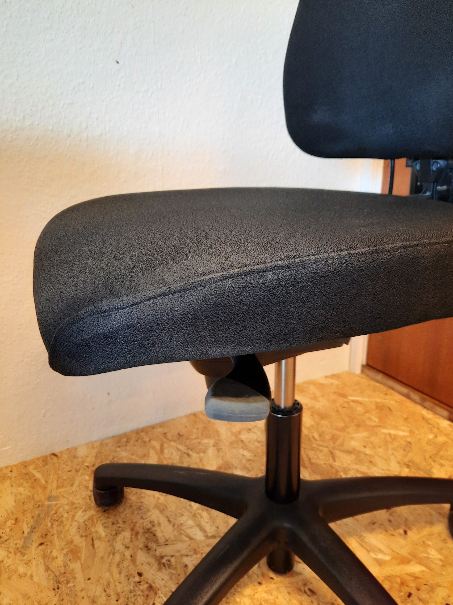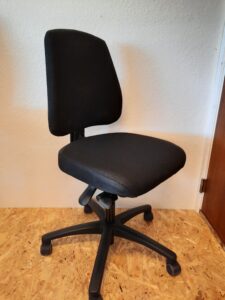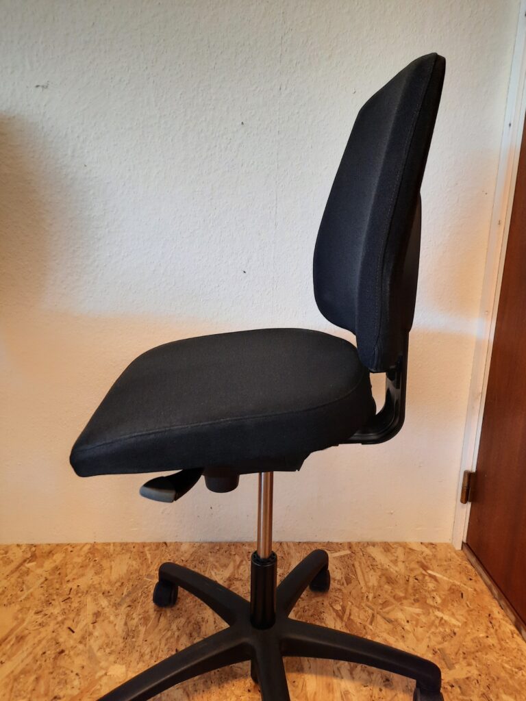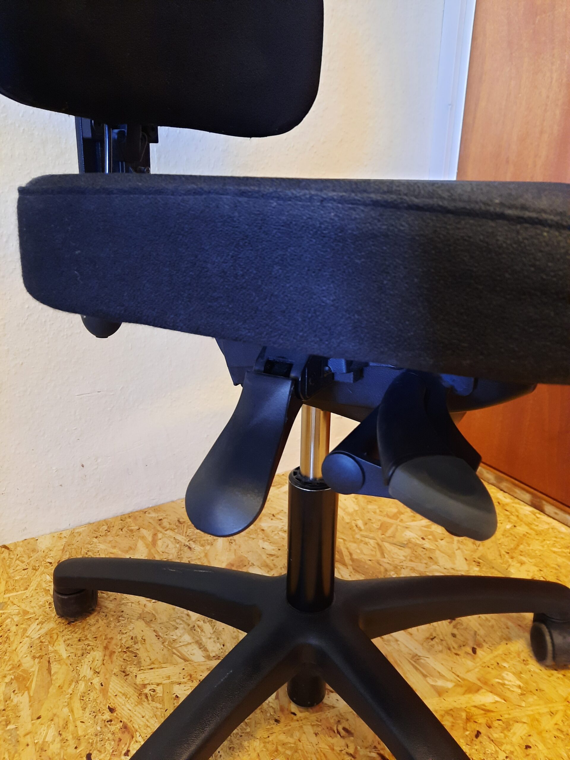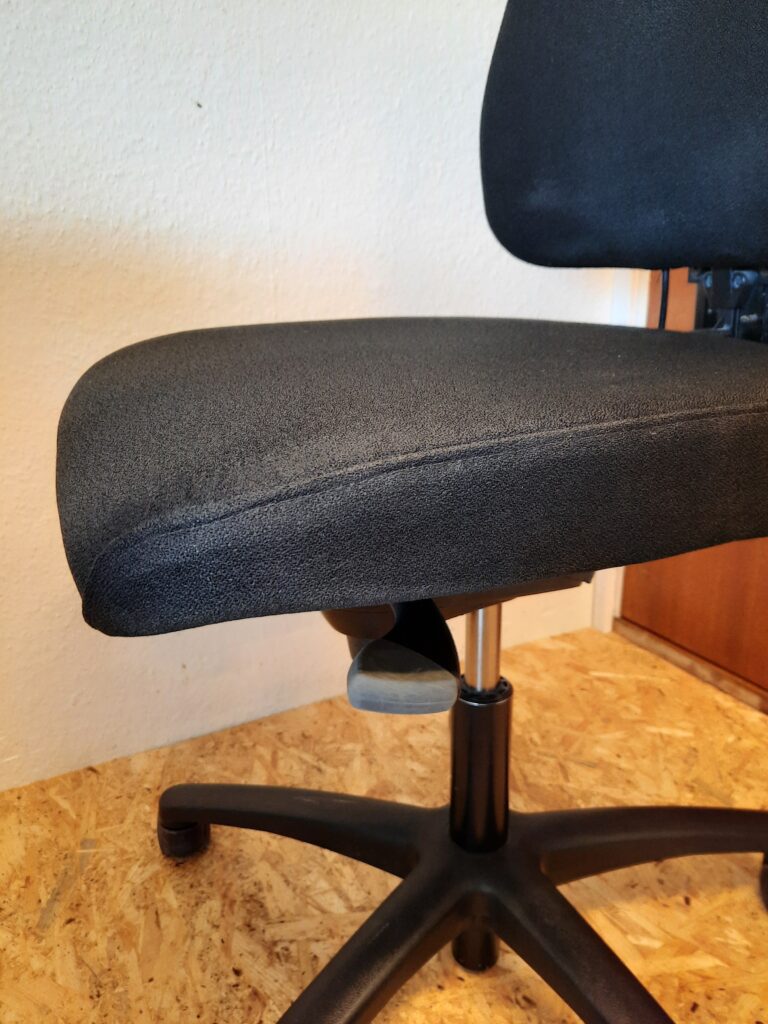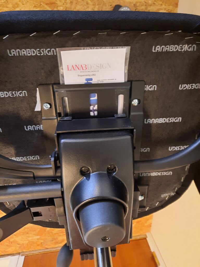 Lanab Design LD62 kontorstol er en stol med masser af muligheder. Den har sædeforskydning frem/tilbage, free float funktion eller fastlåsning i en ønsket position. Den kan vægtreguleres efter kropsvægt, rygstykket kan hæves eller sænkes, der er sædevip og endelig kan den højdeindstilles fra 48-64 cm. Hjul: Velegnet til tæpper. Stolen er med brugsspor, såsom pletter/afblegninger i stoffet. Desuden har stolen en pumpe til lænden, som ikke virker optimalt – dog fin støtte til lænden alligevel.