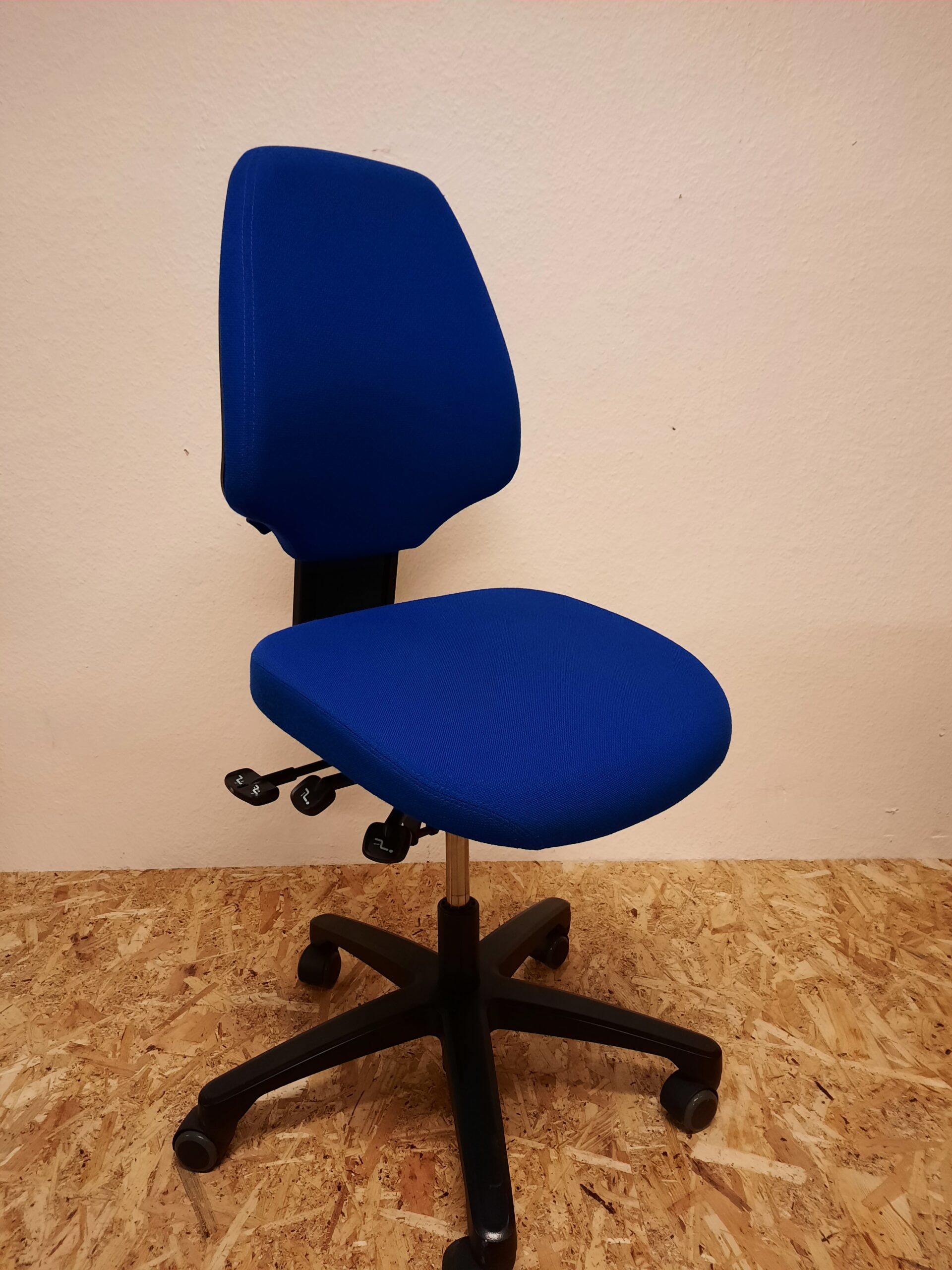 RH Activ 220 med blåt stof betræk. Activ 220 er en lækker kvalitetsstol, som indbyder til en aktiv og varierende siddestilling igennem hele arbejdsdagen. Stolen har en siddehøjde, som kan indstilles fra 42-55 cm. Derudover kan rygstykket højdejusteres og det samme kan sædedybden. Stolen har desuden trinløs justering af rygvinklen og free-flow sædevip. Stolen er i pæn stand, med mindre brugsspor – lidt løse tråde i toppen af rygstykket – se billede! Pris 1500,- Forhør nærmere for fragtpris. Varenummer: 040121157Varen er solgt! Søger du noget lignende? Så henvend dig gerne via sidens kontaktformular, eller på 21221177. Mvh. Jens – Grevsen Genbrug