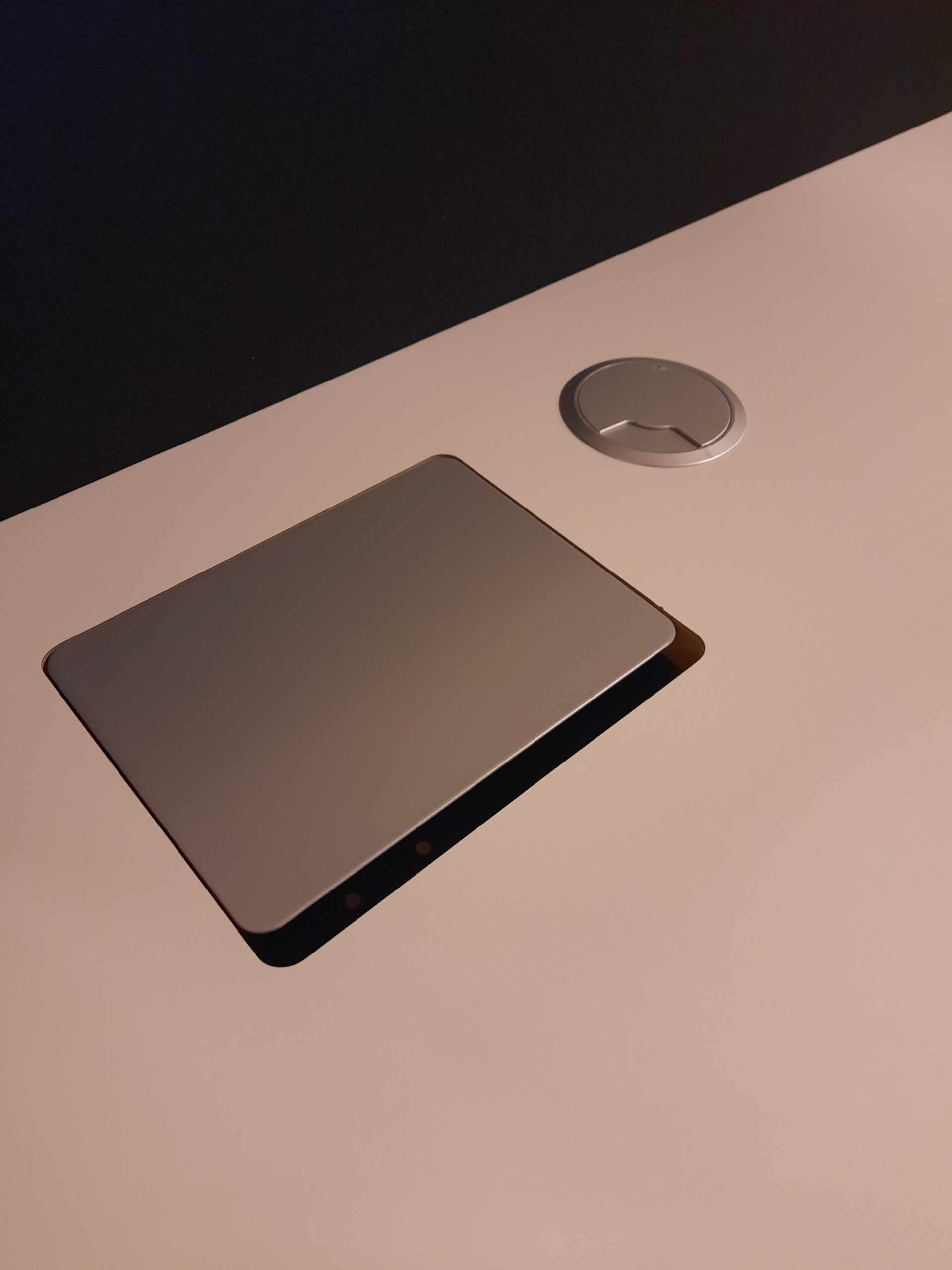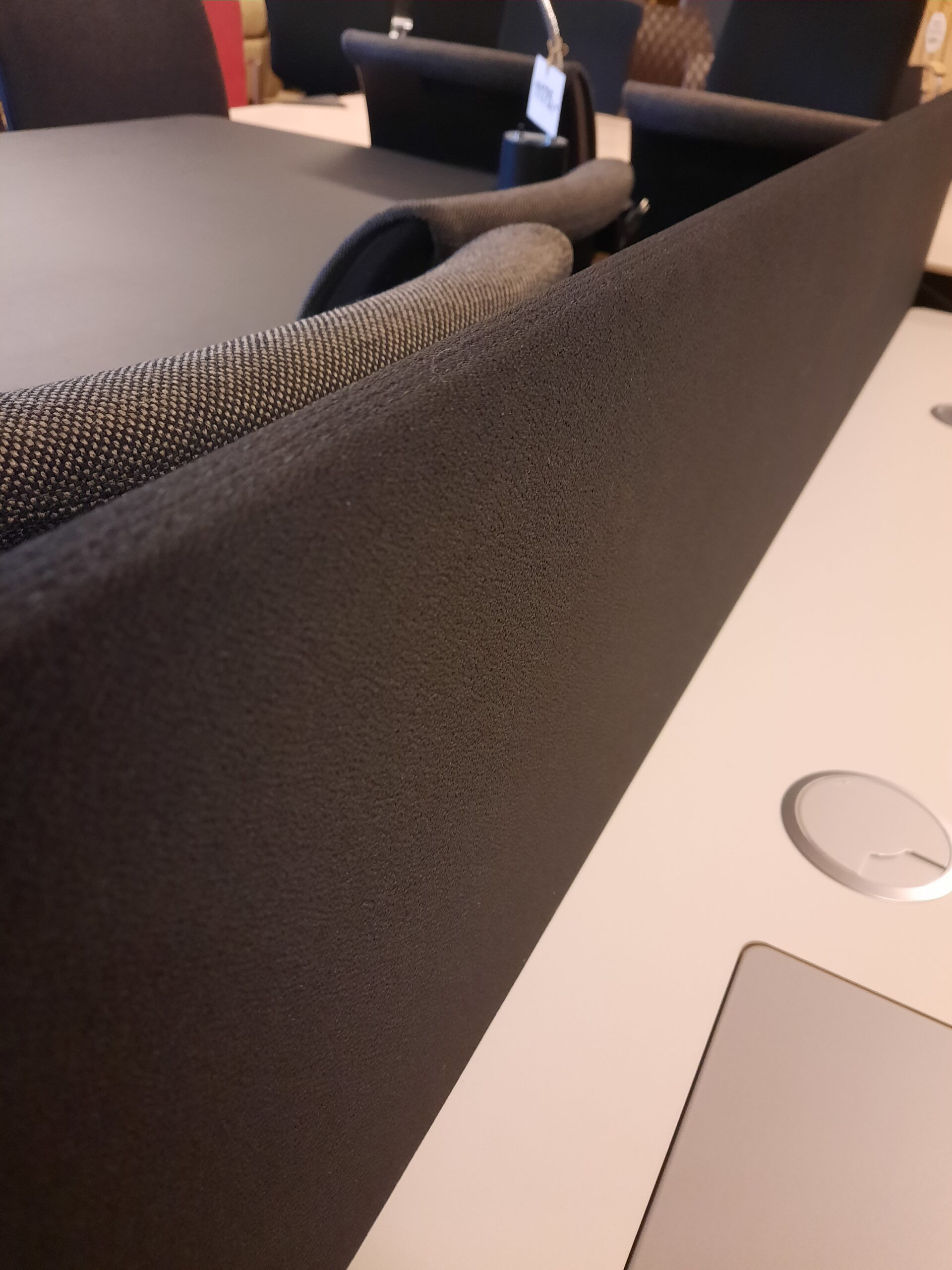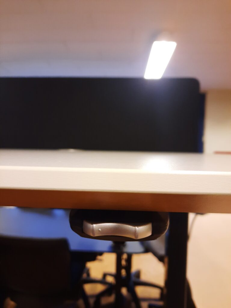 Duba B8 el hæve/sænkebord str. 160×80 cm. Bordpladen er i hvid laminat. Bordet er med grå støjisoleringsvæg og gråt stel på højdejusterbare fødder. Arbejdshøjden kan indstilles fra 64,5-129,5 cm. Bordet er med hæve-/sænkekontakt i højre side, hul til ledningsgennemføring i højre side/midtfor, samt ledningsgennemføringshul med dæksel i venstre side og et et større ledningsgennemføringshul med dæksel også i venstre side – til f.eks. skærmledninger osv. Derudover er bordet med Linak styreboks og der er kabelbakke monteret under bordpladen. Bordet fremstår i flot stand, med mindre brugsspor.