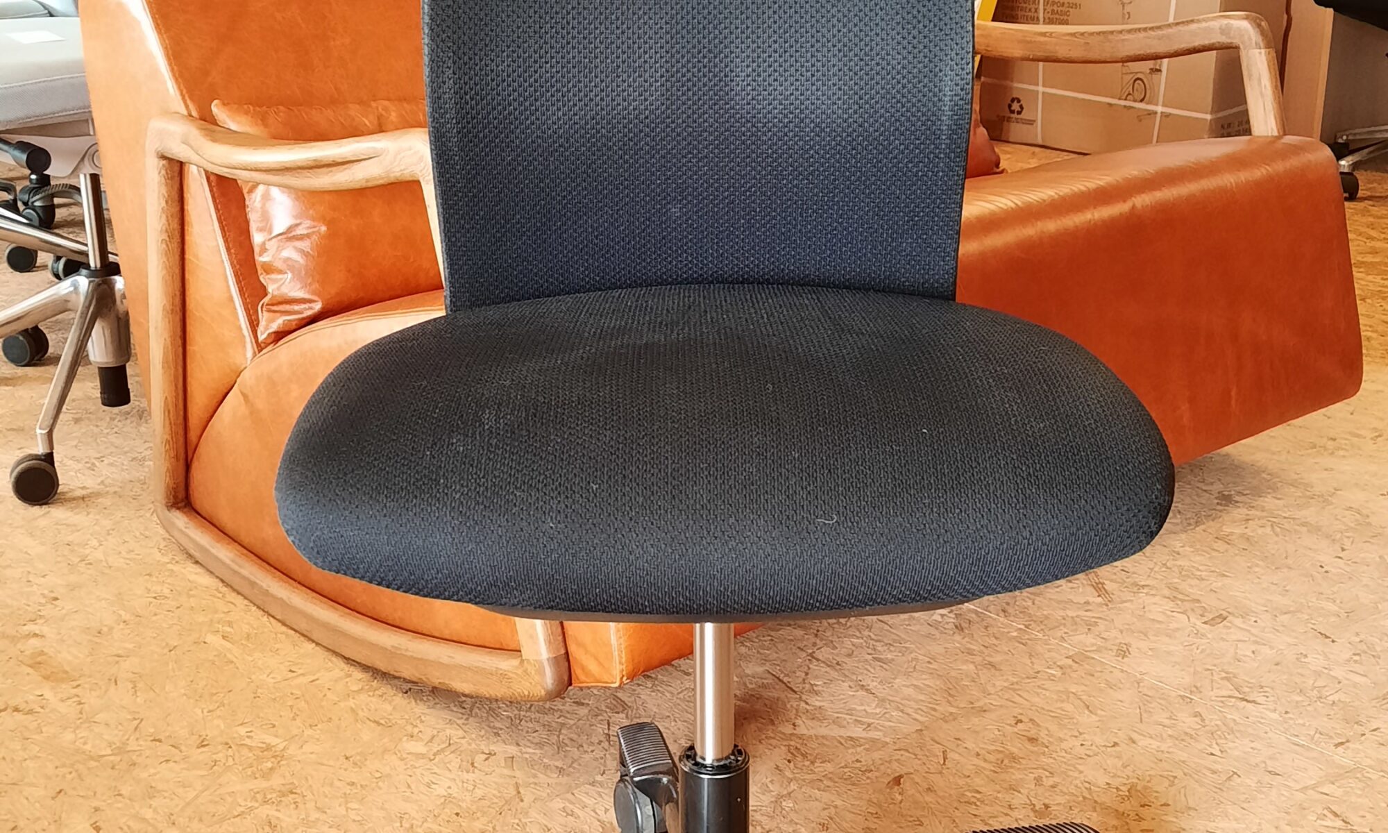Stolen er med brugsspor, såsom pletter i stoffet og mindre knirkelyd i vip.
