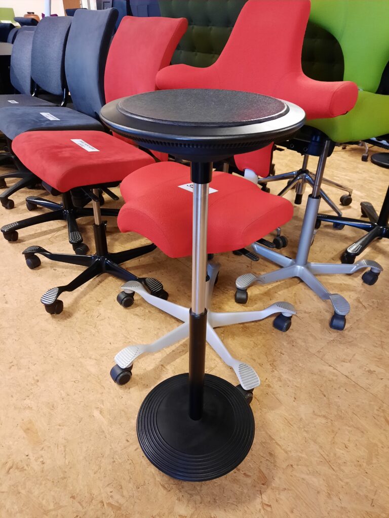Wilkhahn Stitz er en ergonomisk stå-/støttestol, der er idéel til dig, som står meget op ved arbejdsbordet og samtidig ønsker god støtte. Stolen hjælper dig med at holde din krop i bevægelse, grundet dens afrundede fod. Dette forbedrer balanceevnen, samt styrker muskler og led. Stolen er højdejusterbar fra ca. 60-80 cm. Designet af Hans Roericht. Stolen fremstår med almindelige brugsspor. Lagerbestand: 1 stk.